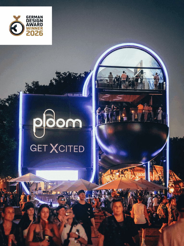 Der German Design Award zählt zu den angesehensten Preisen der internationalen Designlandschaft. Seit 2012 zeichnet er herausragende Projekte aus, die in Gestaltung, Konzeption und Wirkung neue Maßstäbe setzen. In der Kategorie Excellent Communications Design – Event werden kreative Markenerlebnisse prämiert, die inhaltlich, strategisch und ästhetisch überzeugen – und genau das ist mit dem Ploom Planet eindrucksvoll gelungen.